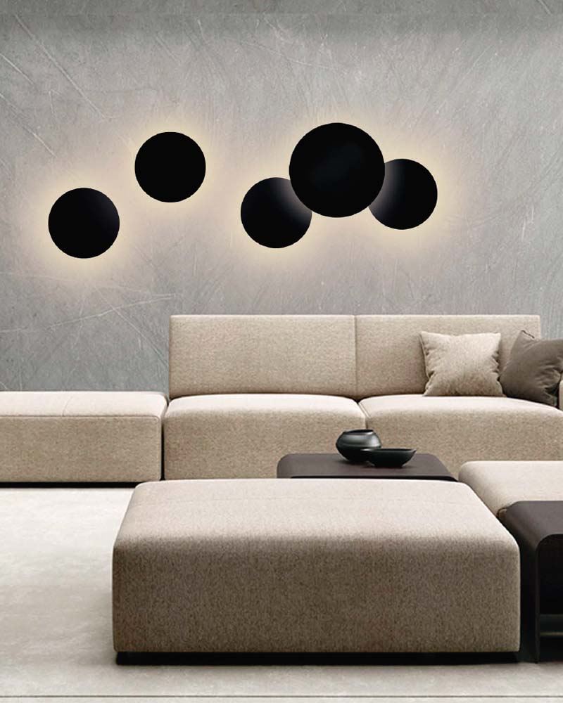 Aplique de pared fabricado en metal disponible en 2 tamaños y acabados con LED integrado generando luz indirecta.