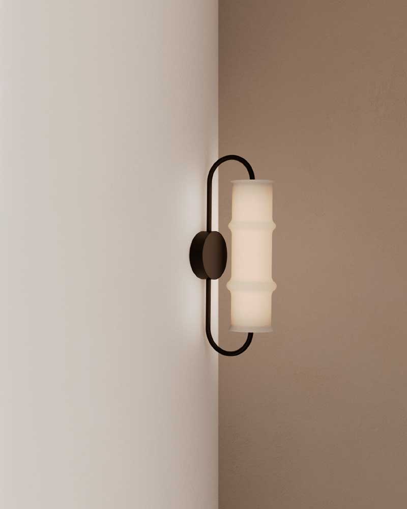 Aplique de pared fabricada con estructura metálica y tulipa de cristal opal.