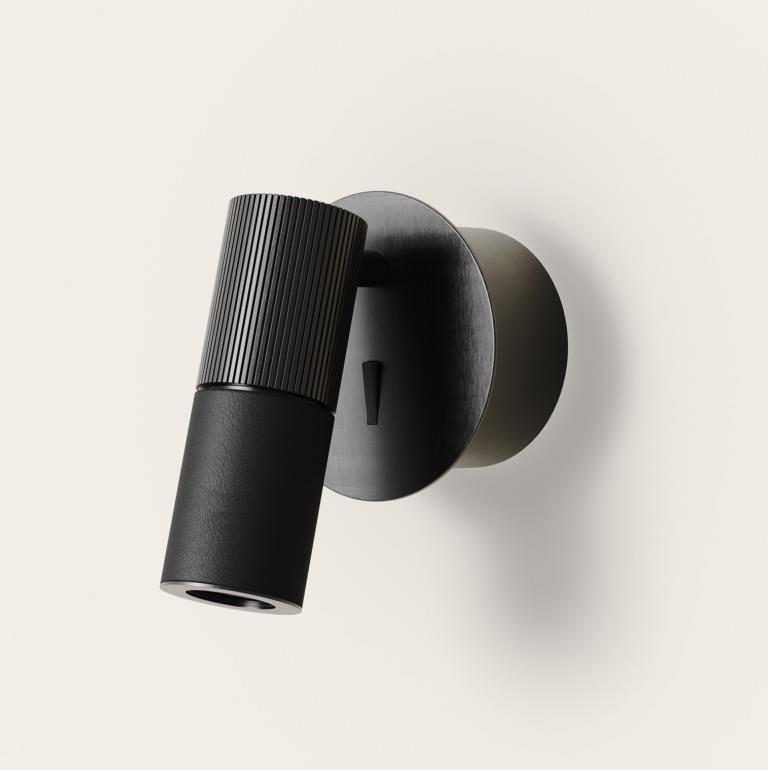 Aplique de pared LED orientable con interruptor en la base y detalles en cuero disponible en diferentes acabados