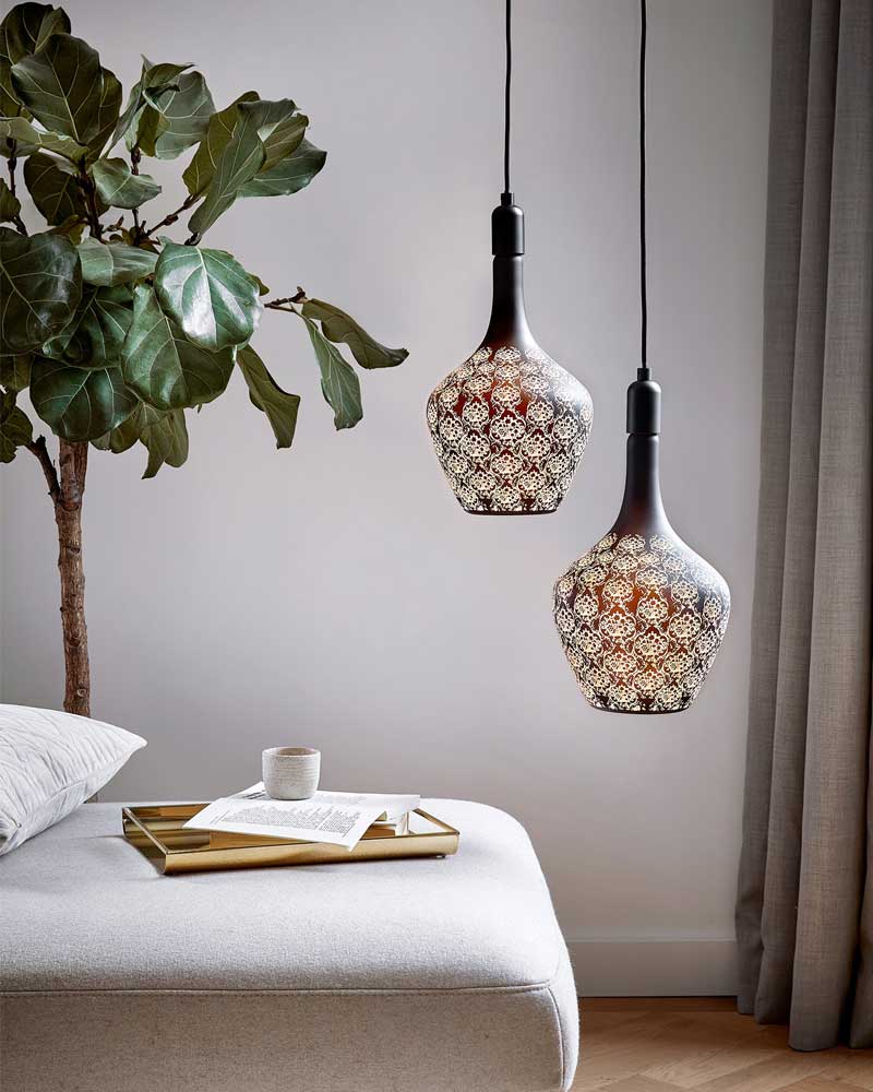 Bombilla LED de gran formato en cristal decorativo con motivos disponible en 3 acabados.