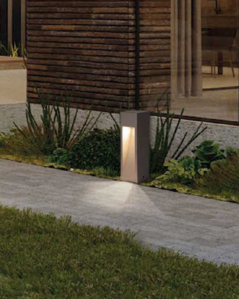 Outdoor floor-standing post light made of cement with integrated warm-toned LED lighting 3000°K