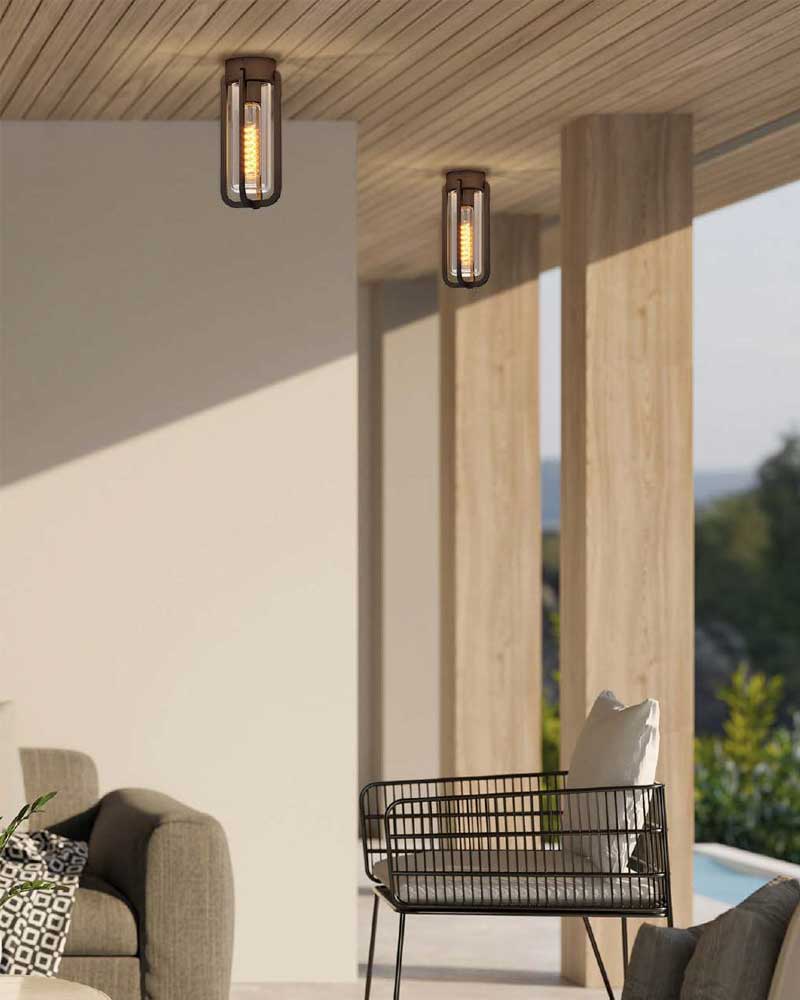 Outdoor ceiling lamp made of metal and glass with IP65 protection