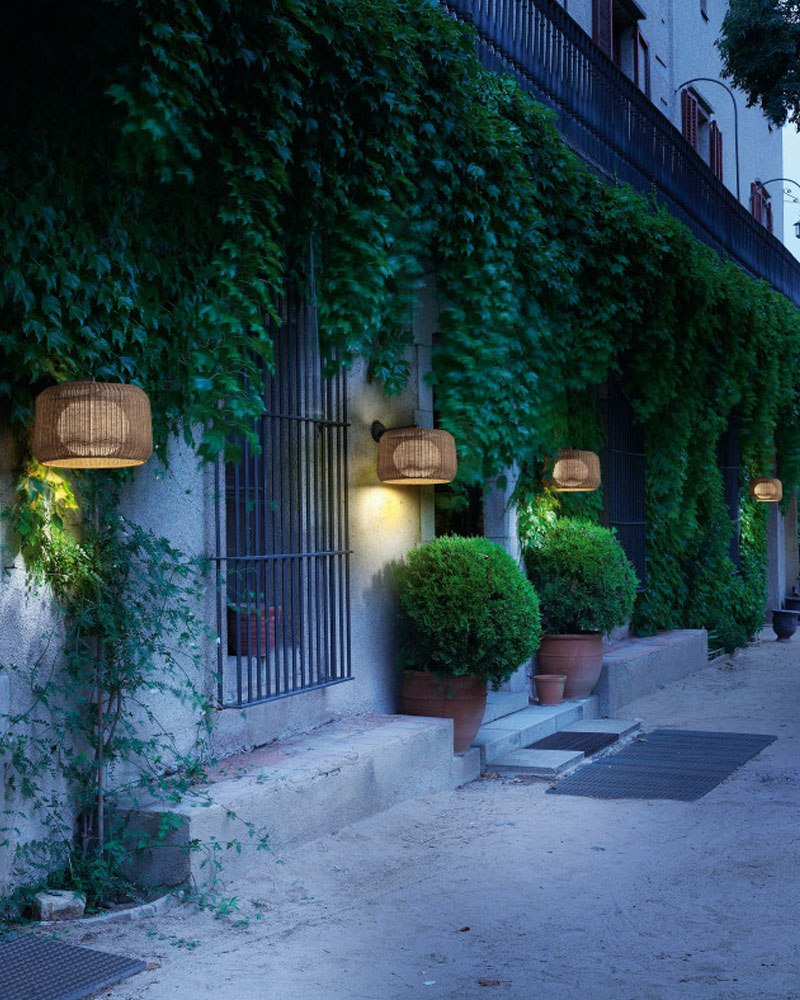 Wall lamp manufactured in meta, synthetic fiber and opal polyethylene available in 2 finishes