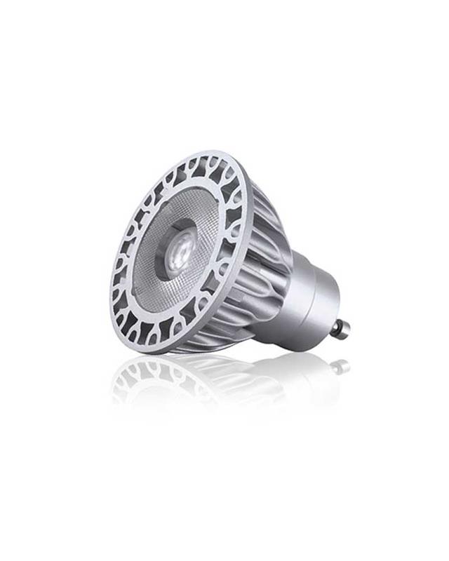 LED bulb type PAR16 GU10 of high quality and design with a power of 7.5w and 9.5w performance of 575 lumen to 725 lumen depending on the hue and the degrees of opening.