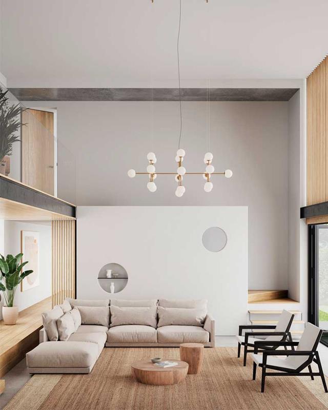Suspension using height-adjustable steel cables (maximum height 5m)
