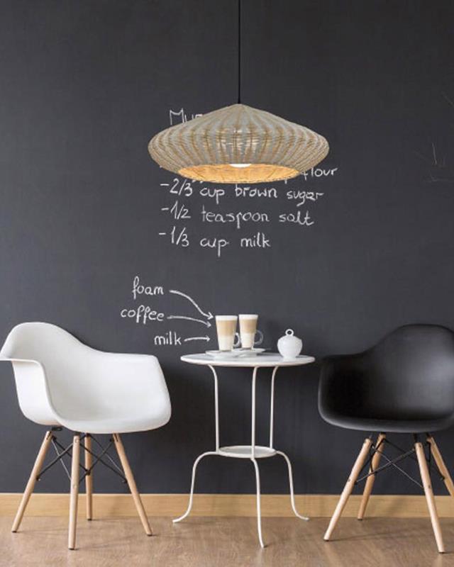 Hanging lamp made of wicker.