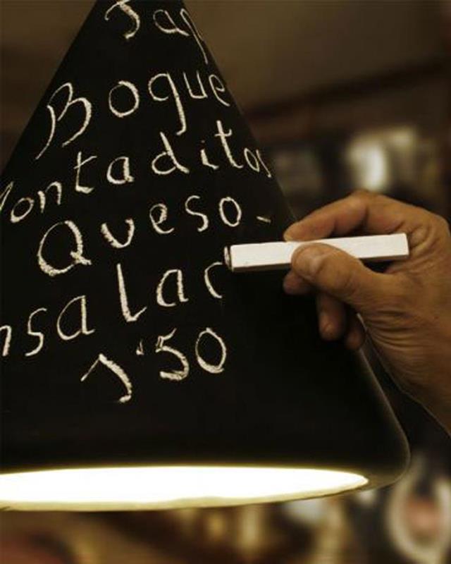 Hanging lamp composed of a tulip of conical shape in black slate color with white interior. It can be painted and erased with chalk thanks to its slate finish. Ideal for personalization in stores, restaurants, coffee shops, hotels, etc.