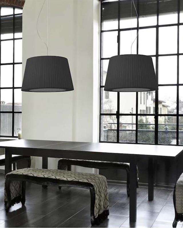 Suspended ceiling lamp of large size composed of a fabric tulip taped.