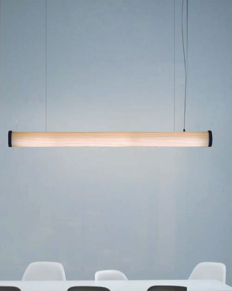 Tubular hanging lamp in natural wood
