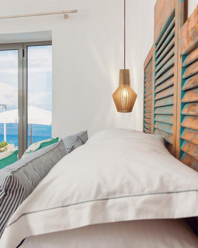 Hanging lamp in wood in natural or black finish with E-27 lampholder.