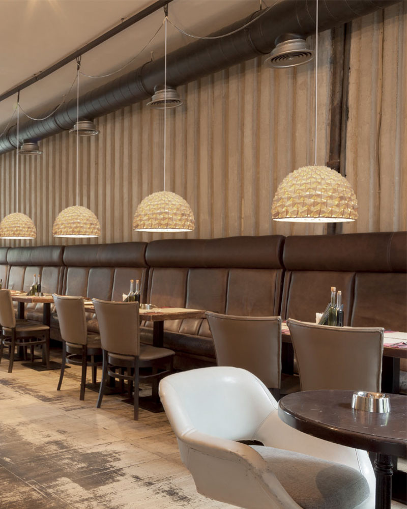 Hanging lamp made of wood in natural color finish. It incorporates a lampholder E-27.