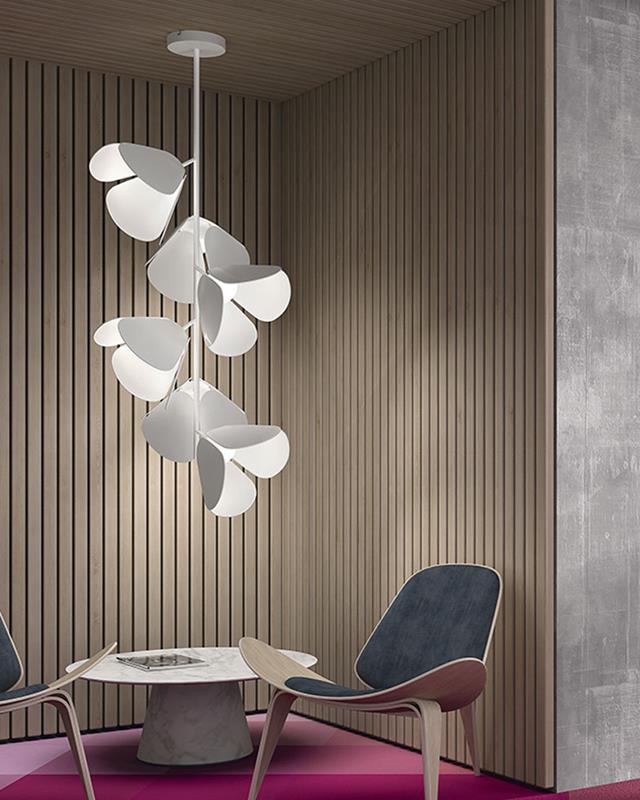 Each tulip incorporates 9w integrated LED in warm tone 2700ºk with 1035 lumen of performance and CRI> 90
