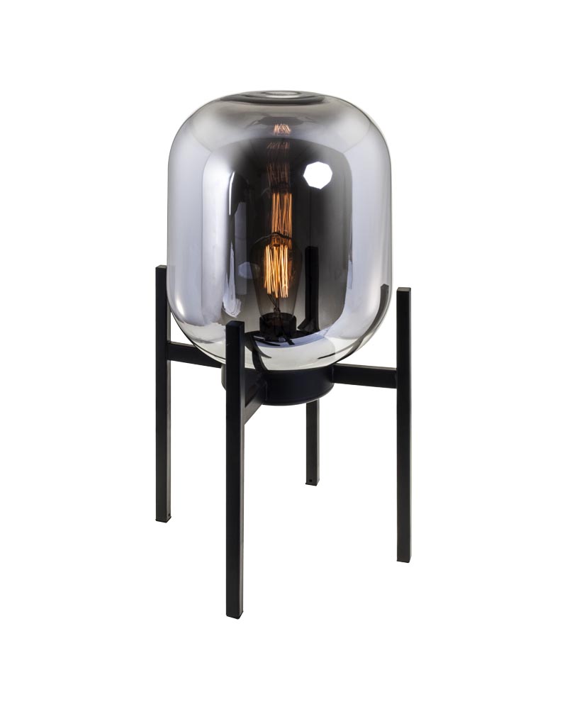 Table lamp with black foot and smoked glass diffuser with E-27 lampholder