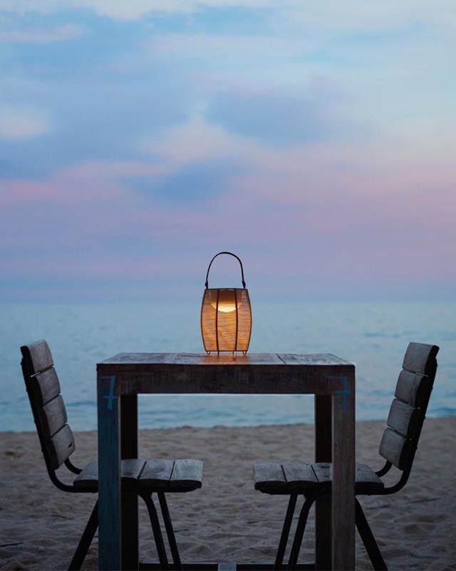 Portable table lamp with rechargeable battery made of iron, cotton thread and silicone.