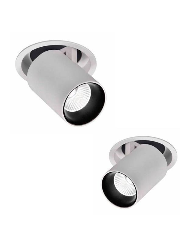 Circular recessed downlight made of white aluminum with system that allows its orientation, tilting and removable. Available in 2 sizes and powers to choose.