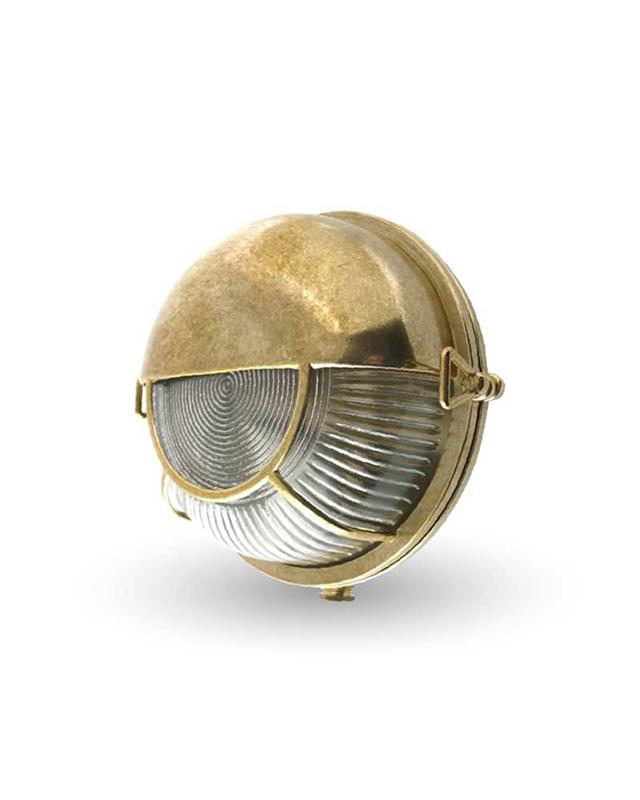 Nautical style wall light fixture made of brass with IP64 protection valid for indoors and outdoors.