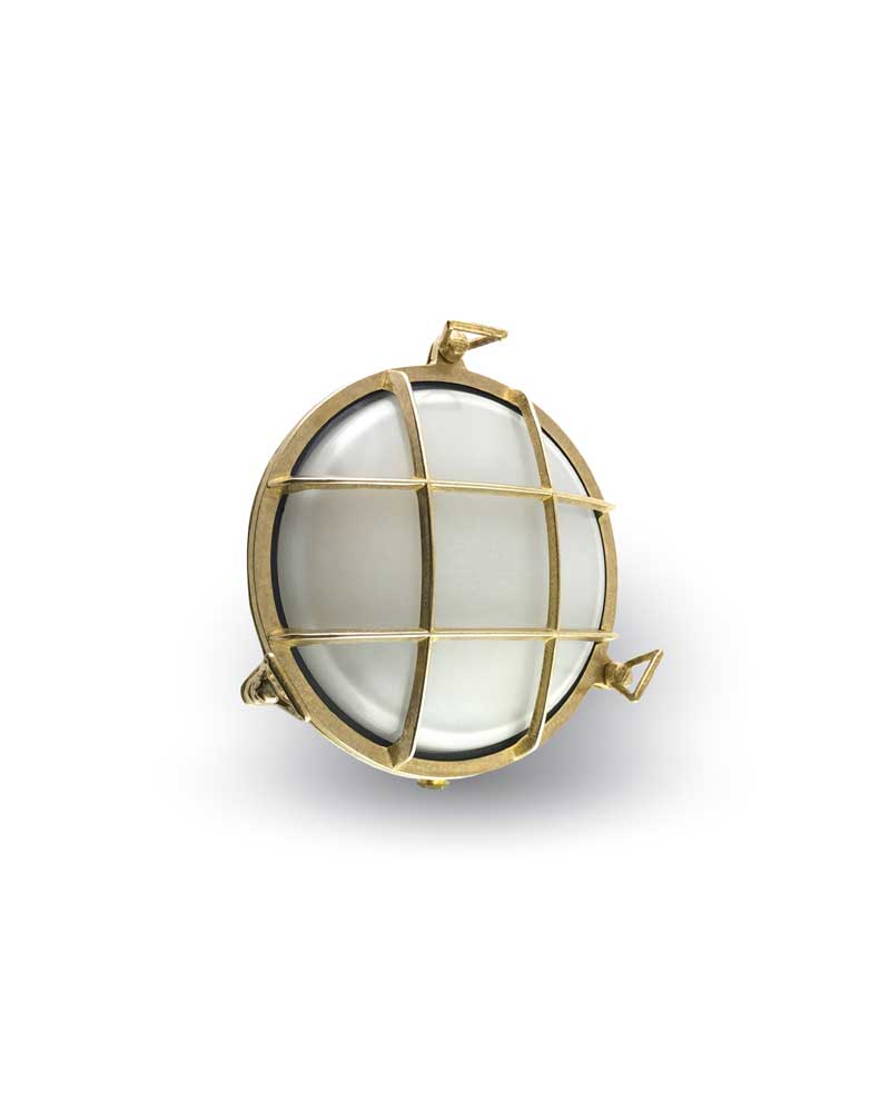 Nautical style wall or ceiling light fixture made of brass with IP64 protection valid for indoors and outdoors.