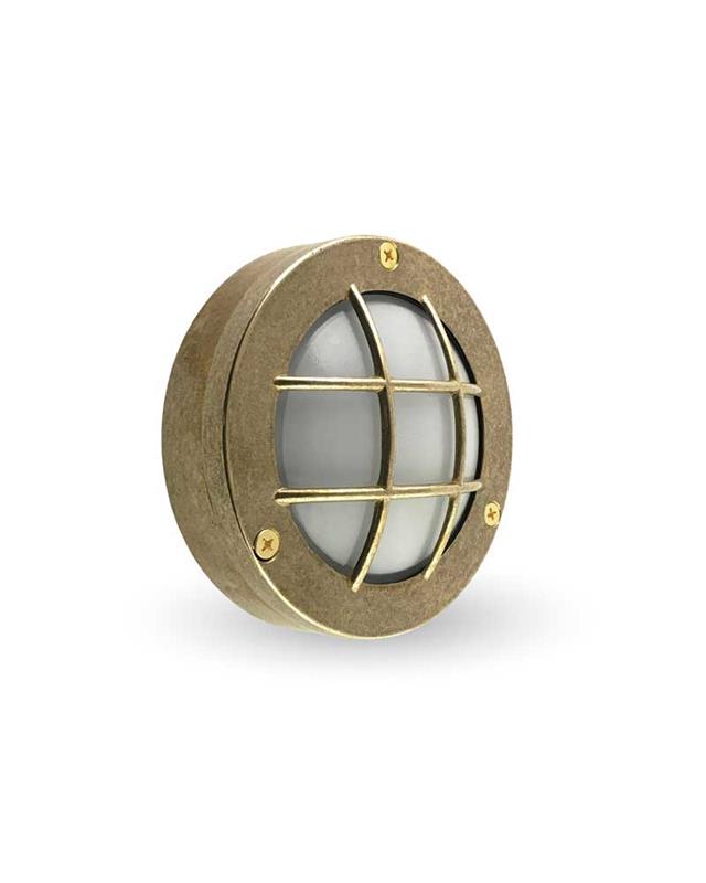 Nautical style wall or ceiling light fixture made of brass with IP64 protection valid for indoors and outdoors.