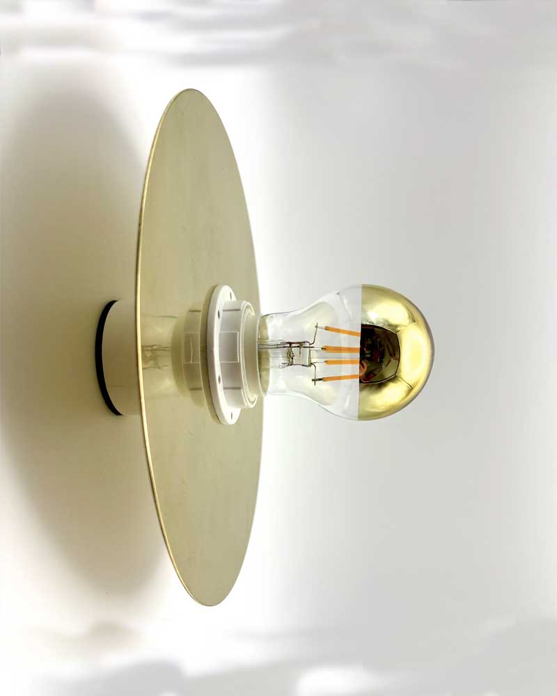 Wall light made of pure brass with a white or black base and an E27 lamp holder.