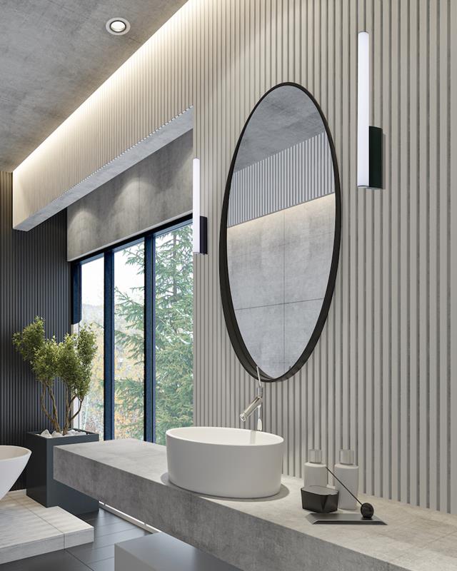 Wall light with IP44 protection, available in 2 colors and 2 LED light tones.
