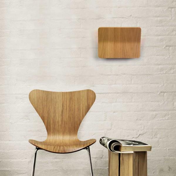 Nordic style wall lamp made of oak wood with white metal structure. EL apply is available in 3 sizes for the normal version and 1 size in the vertical version.