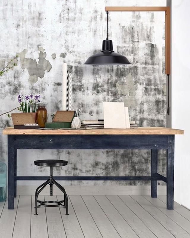 Wall light made of natural beech wood support with vintage metal bell type luminaire.