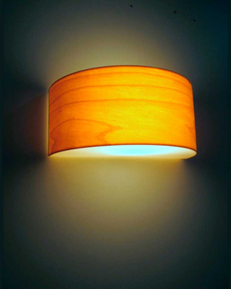 Wall light in natural wood veneer available in 8 colors and 2 sizes.