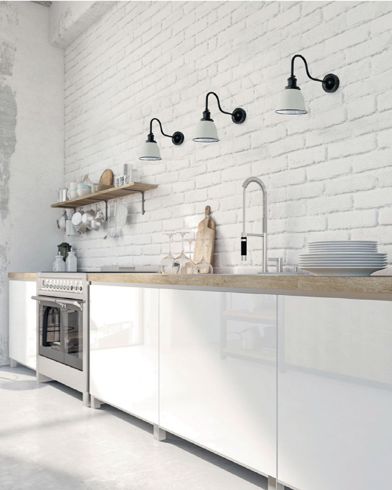 Wall lamp made of iron in different finishes to choose. The base of the wall, the arm and the lamp holder are in black.