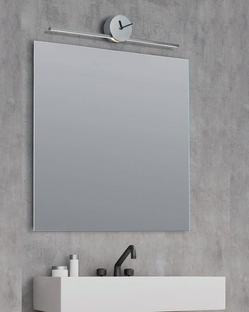 Bathroom wall lamp made of metal with integrated 12w LED lighting in warm tone and decorative clock.