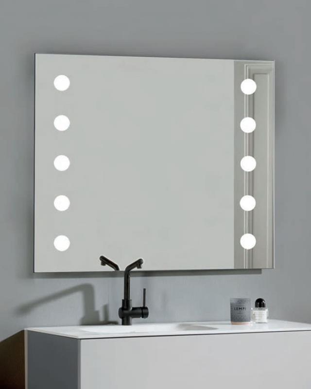 Espejo de baño con iluminación LED tipo camerinos disponible en 2 tamaños.