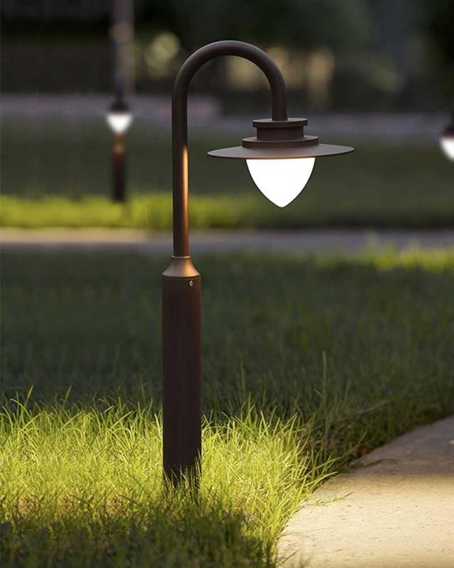 Baliza de suelo exterior fabricada en aluminio en color gris con LED integrado de 8w 3000ºk