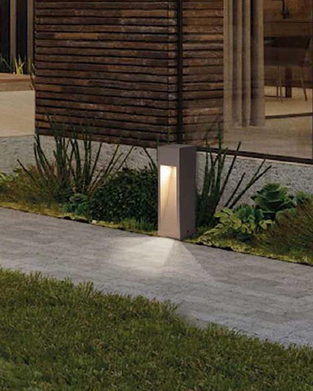 Baliza de pie exterior en cemento con iluminación LED integrada en tono cálido 3000ºk