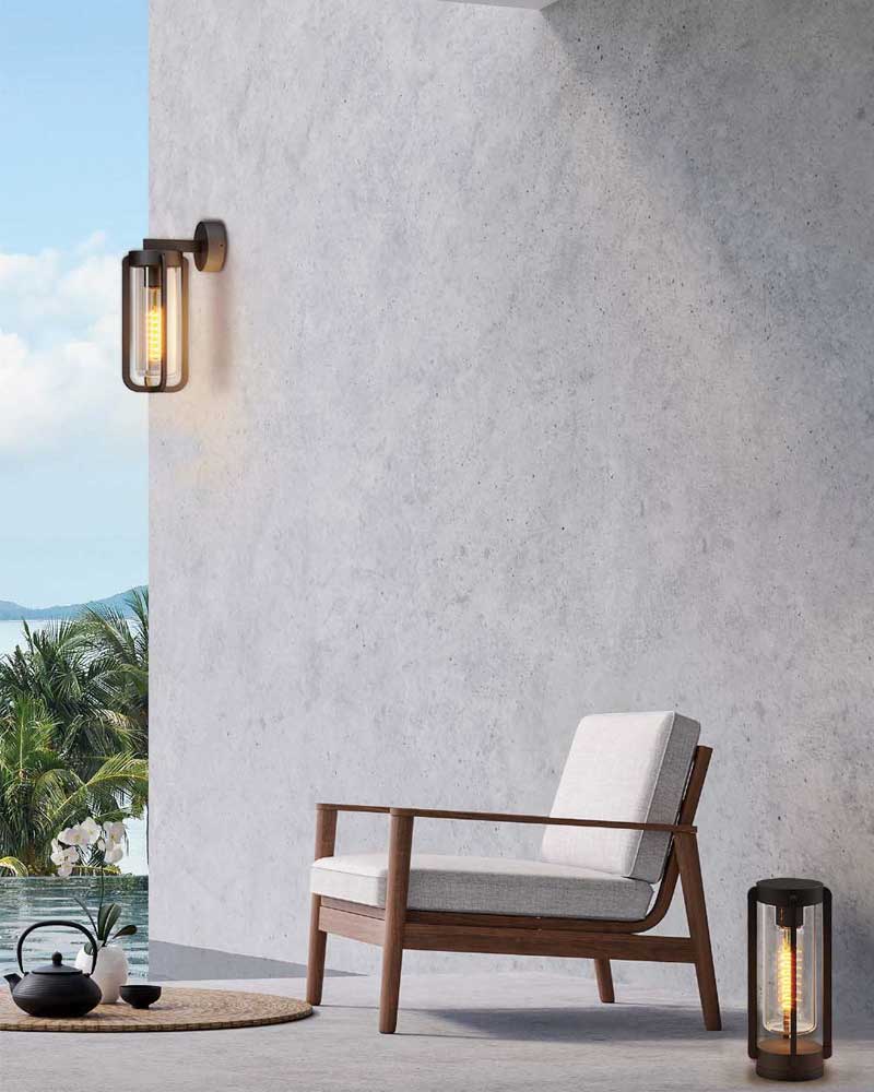 Aplique de pared exterior fabricado en metal y cristal con protección IP65