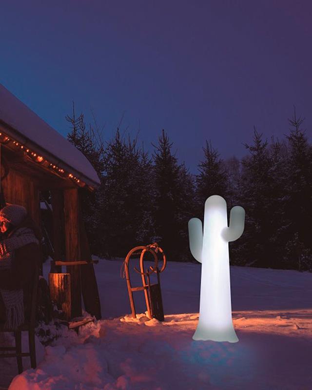 Lámpara de pie valida para interior o exterior gracias a su protección IP65. Fabricado en polietileno en color verde o blanco y esta preparado para ser un elemento muy duradero y resistente tanto a las bajas temperaturas como a las altas y resistente a los rayos UV, es un producto de alta calidad fabricado en España.