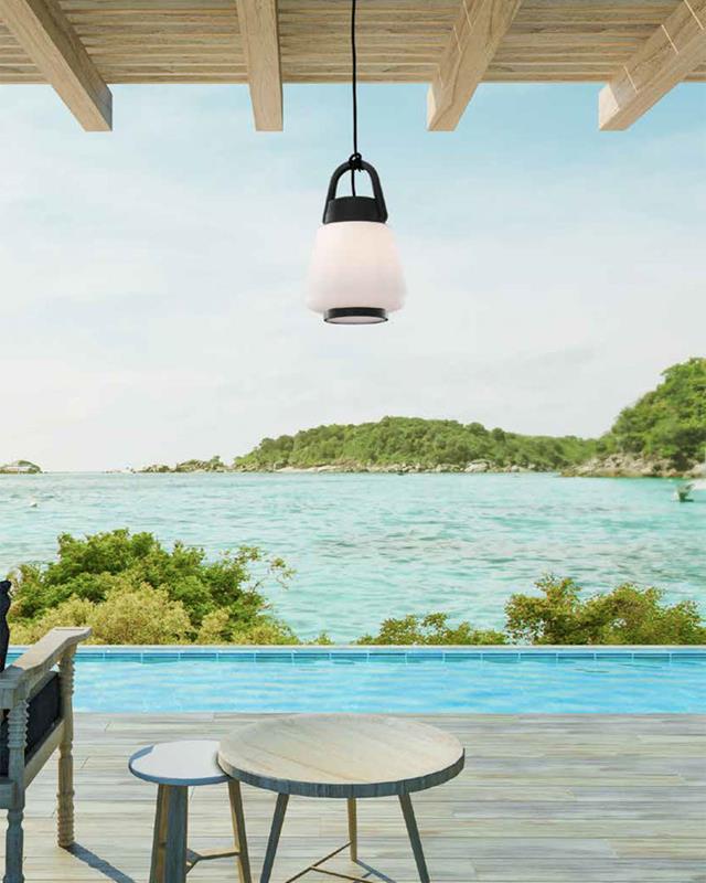 Lámpara de colgar con protección IP44 válida para exterior fabricada en ABS, PE y aluminio
