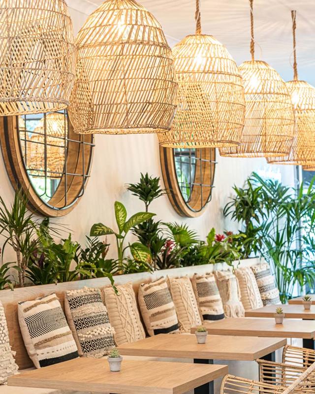 Lámpara colgante fabricada en ratan de manera artesanal con portalámparas E-27.