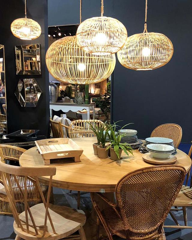 Lámpara de colgar fabricada en ratan en acabado natural disponible en 3 dimensiones
