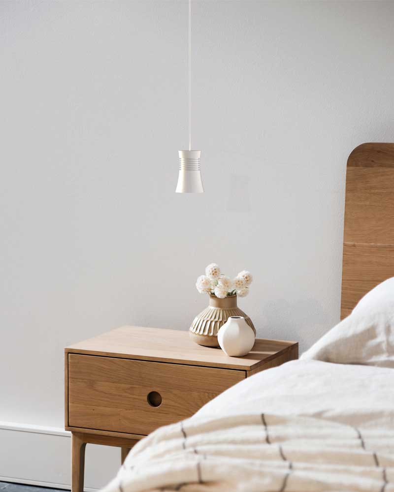 Lámpara de colgar fabricada en aluminio en color blanco o negro con iluminación LED integrada