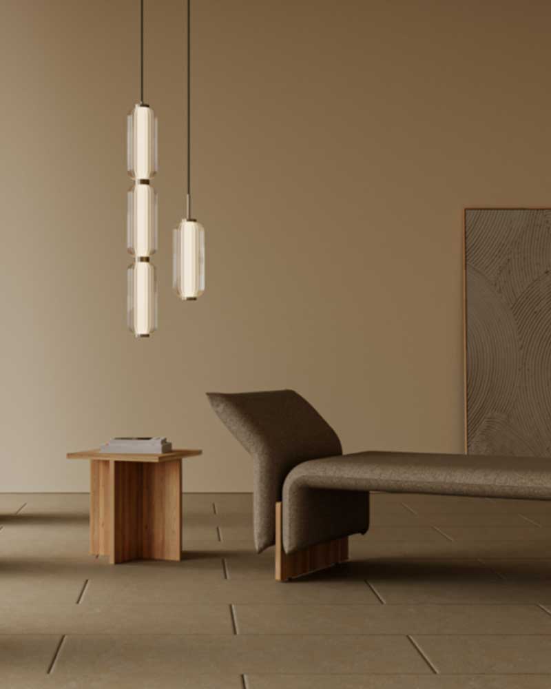 Lámpara de colgar que se puede instalar en vertical y horizontal con iluminación LED integrada en tono cálido regulable en intensidad.