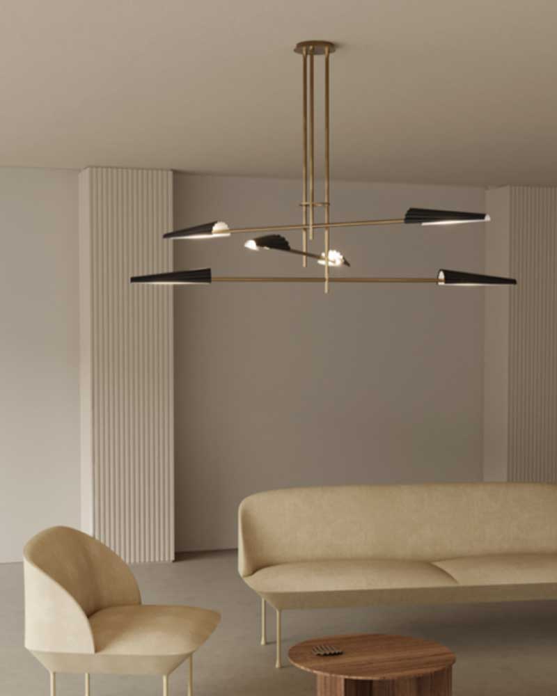 Lámpara de techo metálica disponible en diferentes acabados con 6 brazos