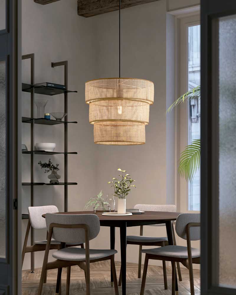 Lámpara de colgar en ratan en acabado natural conn cable negro y portalámparas E27
