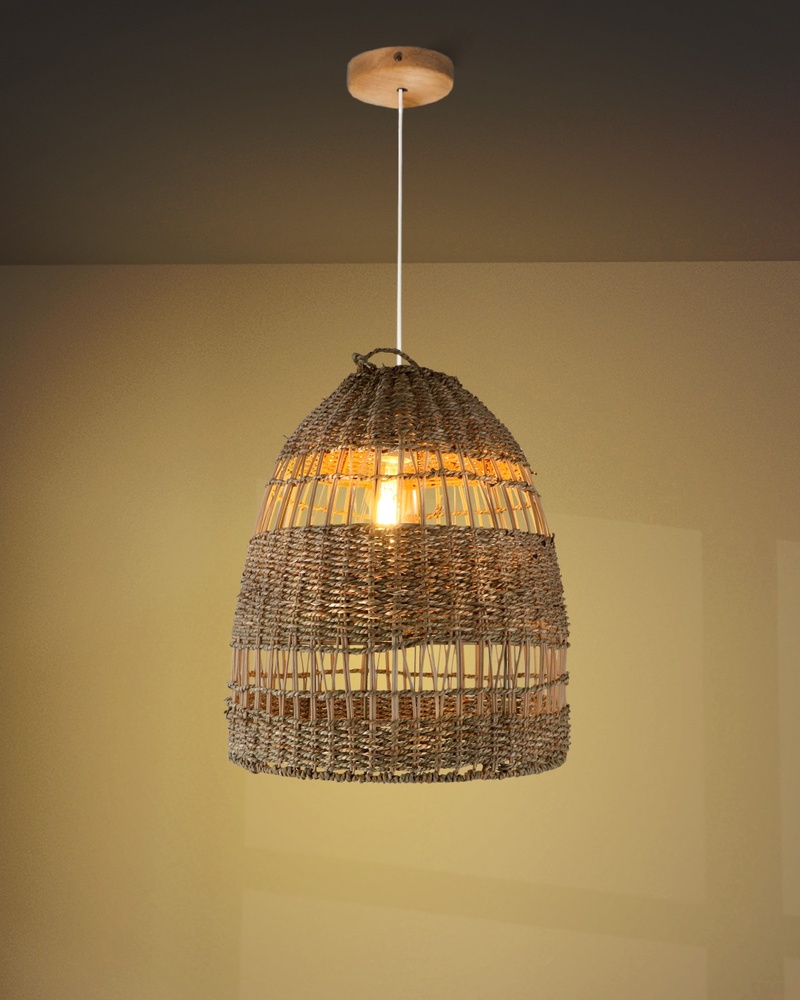 Lámpara de colgar estilo natural fabricada en Natán de gran tamaño con portalámparas E27