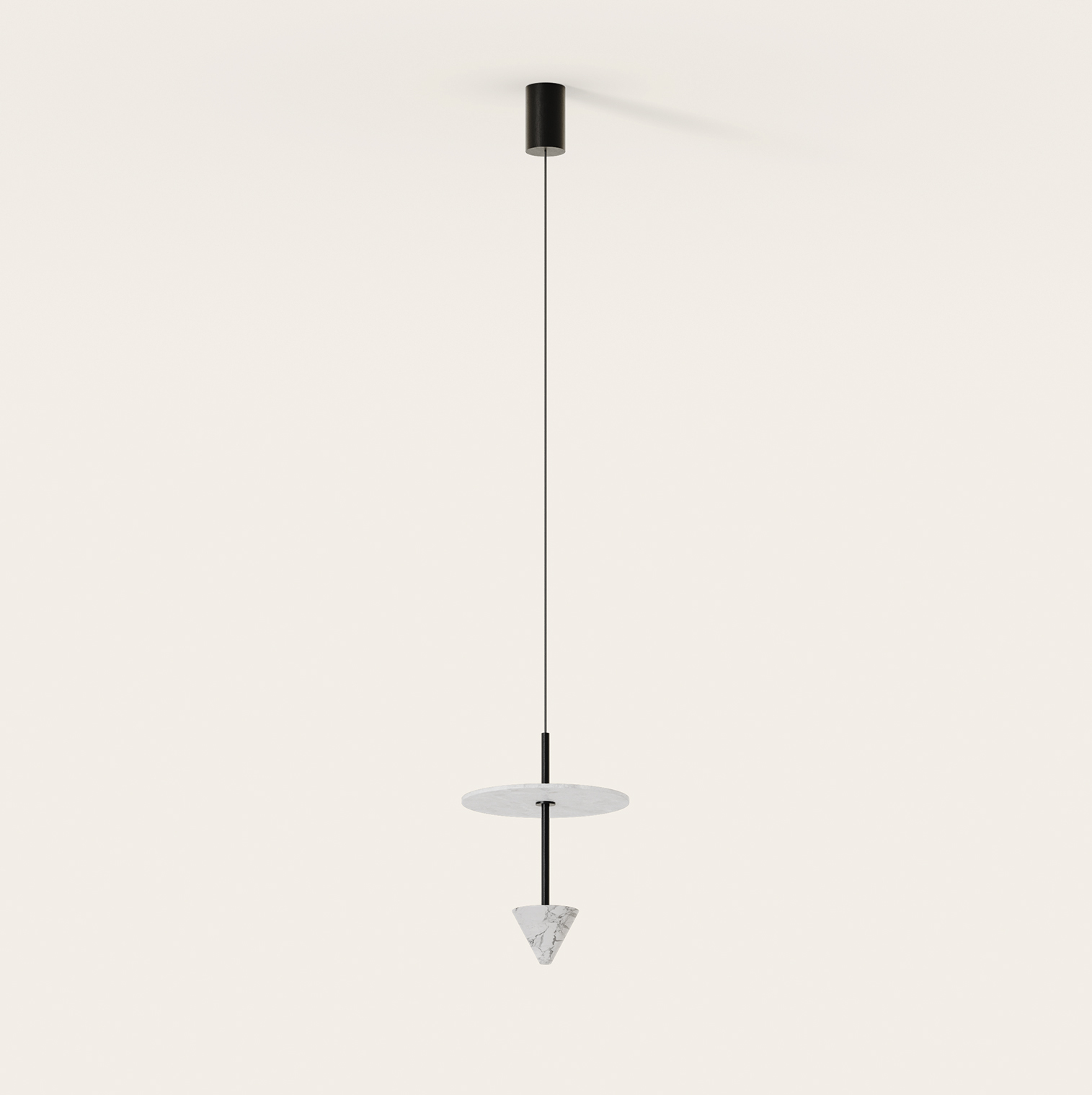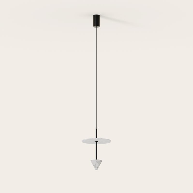 Lámpara de colgar fabricada en metal y mármol con iluminación LED y diferentes accesorios en resina o mármol.