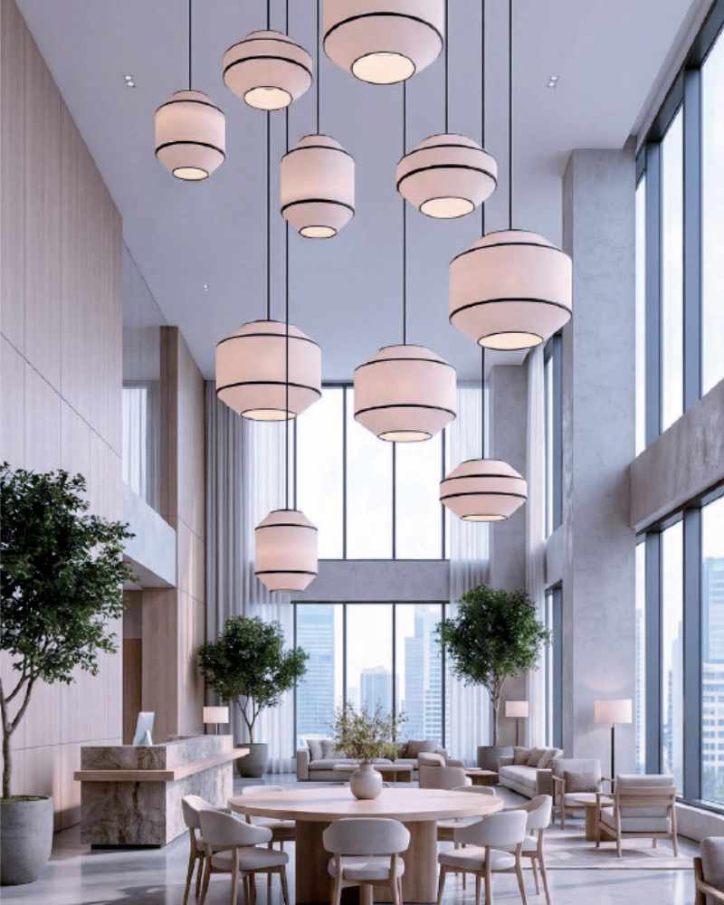 Lámpara de colgar fabricada con pantalla de tela en color blanco y negro