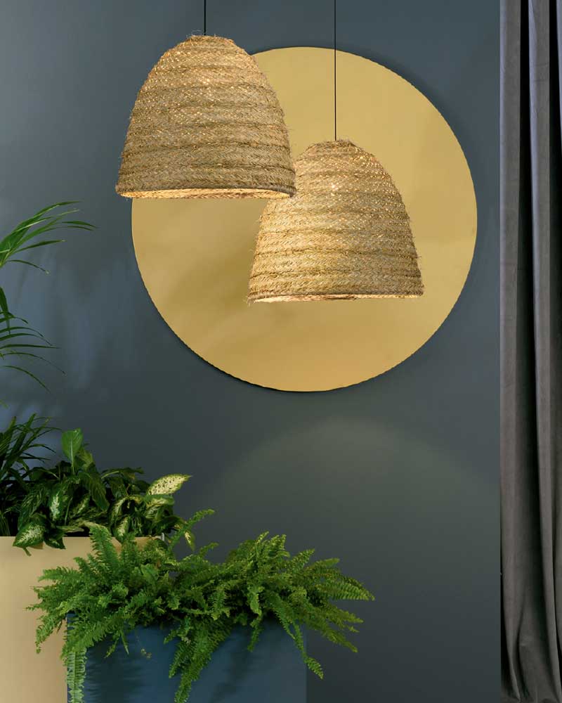Lámpara de colgar fabricada en fibras naturales con portalámparas E-27