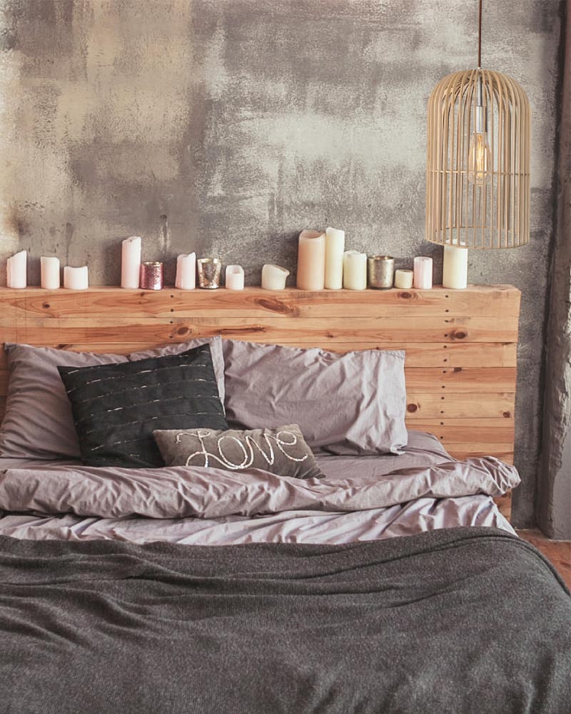 Lámpara de colgar con tulipa en madera natural.