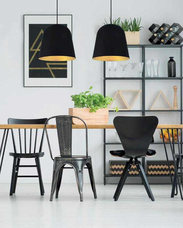 Lámpara colgante fabricada en metal disponible en diferentes acabados. Portalámparas E-27 (Bombilla no incluida)
