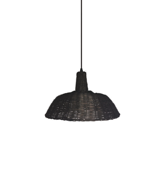 Lámpara de colgar compuesta de una tulipa de mimbre en acabado en color café.