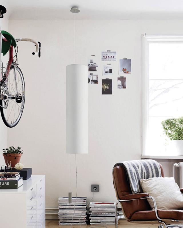 Lámpara de colgar con sistema de contrapeso y distintas posibilidades de instalación.