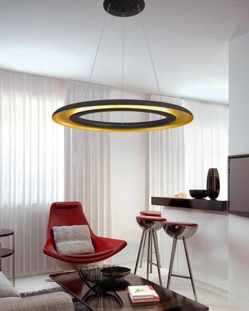 Lámpara de colgar de metal en acabado color negro y oro con LED integrado